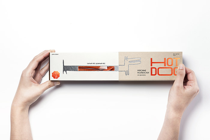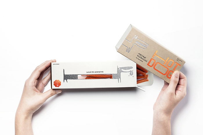 這是David Hovhannisyan設(shè)計(jì)的寵物狗香腸包裝,品牌文字形象生動(dòng),很好的體現(xiàn)了香腸被拉出來(lái)的不斷變長(zhǎng)的感受,同時(shí)兼具識(shí)別性,充滿趣味性。